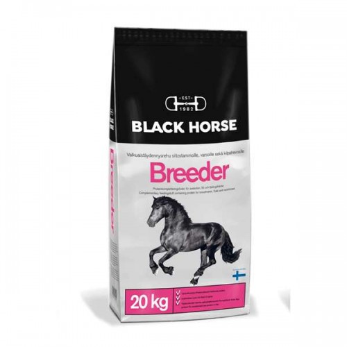Kotimainen Black Horse Breeder on valkuaisrehu siitostammoille, kasvaville varsoille sekä kilpahevosille.