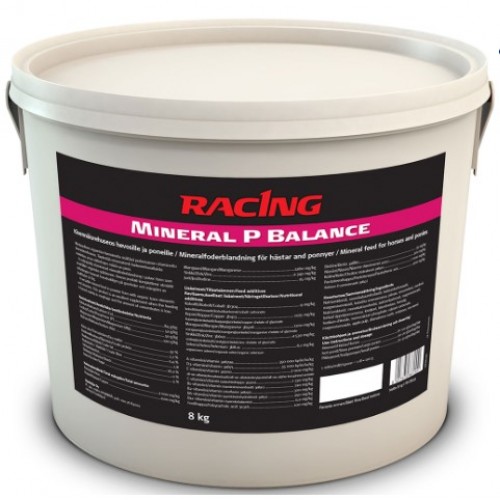 Racing Mineral P Balance on monipuolinen orgaanisia hivenaineita sisältävä jauhemainen vitaminoitu kivennäisrehuseos. Tuotteen kalsiumin ja fosforin suhde on 1,6:1. Ca: P -uhde on optimoitu ruokintaan, joka pohjautuu pääosin heinään tai säilöheinään ja väkirehujen käyttömäärä on pieni tai niitä ei käytetä ollenkaan. Racing Mineral P Balance sisältää kuparin, sinkin, mangaanin ja seleenin tasapainoisessa suhteessa ja orgaanisessa, hyvin imeytyvässä muodossa. Tuote sisältää kaikki hevosen tarvitsemat vitamiinit. Jauhemainen kivennäinen sisältää myös maittavaa kuivattua omenaa. Racing Mineral P Balancen sisältämä merilevä tuo kivennäiseen hivenaineita myös luonnollisista lähteistä.
