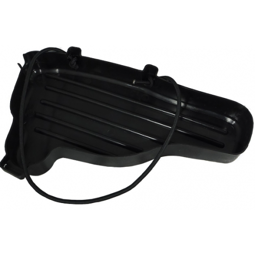 Muovinen moottorisahan suoja-alusta kuljetusta ja säilytystä varten. Alusta estää öljyn ja lian tippumisen sahasta. Saha kiinnitetään alustaan kestävällä kumilenkillä.