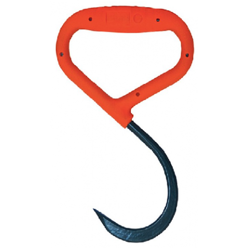 Nostokoukku pyöreällä kahvalla. Kokoteräksinen nostokoukku karkaistulla terällä. Kahva termoplastista kumia.